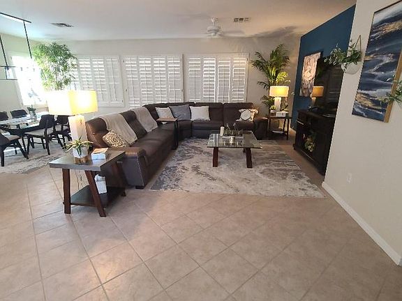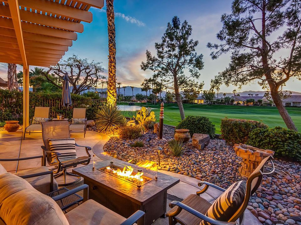 2 MONTH Minimum RENTAL or longer. Available March1st- October 31st 2023. BEAUTIFUL Turnkey 55+ Sun City Palm Desert. Resort style living with Sun City's amenities include golf, pools, 3 clubhouses, bocce ball, tennis, pickleball courts, crafts and arts center, fitness center, restaurants and more. Nicely furnished St. Croix model with 2 bedrooms, (king size beds) den and hobby room. Million dollar panoramic, sunset, lake, golf course and mountain views located on the 10th fairway of the San Gorgonio Golf Course. Gated front courtyard, expanded patio with large Alumawood awning. Lenox AC. All tile floors on the diagonal, Washer and Dryer and newer kitchen appliances with quartz counters. Large great room and dining area, hobby room includes built-in cabinets. Ceiling fans in most rooms and plantation shutters throughout. Extended 2 car garage + cart garage with epoxy floors and beautiful built-in storage and workbench. 2 new 75" & 65" smart TV's, 2 bikes, firepit & BBQ. Shown by appointment. Seeking seasonal tenant from March 1st. to May 31st 2023. Owner pays HOA including Spectrum TV and internet, landscape maintanance, pest control. Tenant pays all other utilities and replaces batteries and bulbs when necessary. Also Pays any HOA fines of a personal nature. Credit check thru Zillow. Pet deposit. $350.00 non-refundable cleaning deposit. Tenant must purchase renters insurance.