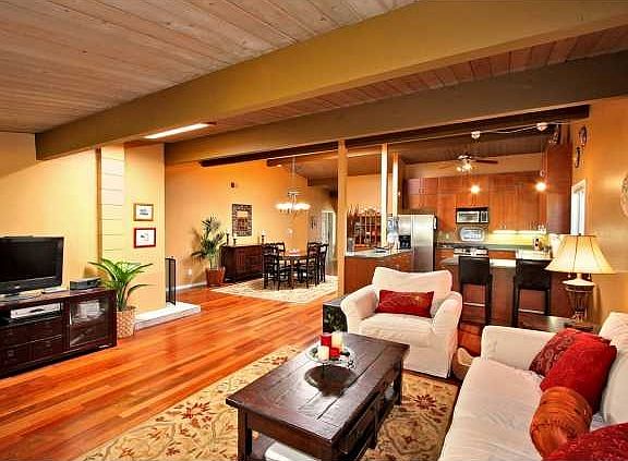 Drogin built Mid-Century Moderns designed by William Krisel are well known for their flexible ability to vary your floor plan.This classic home has had the kitchen walls removed and a large den added to make it an entertainers delight. The open flowing floor plan and huge landscaped yard provides indoor/outdoor living to enhance your ideal California Life Style. Complemented by your private spa,large side garden and lush landscape this open/warm home has a very tropical feel.* See supplement info