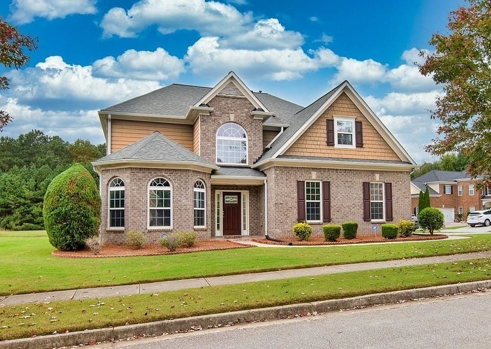 Welcome to this exquisite 4-bedroom, 3-bathroom, 4-SIDE BRICK home located in the highly sought-after Seckinger High School district, nestled within the charming Amelia Parc subdivision. This residence boasts a prime location in a top-rated school district. New plantation shutters on the first floor invite you inside to be captivated by the abundant natural light in this home. The grand 2-story foyer sets the tone, leading to a formal living area, perfect for use as an office, and a formal dining room. NEW HARDWOOD FLOOR THROUGHOUT THE MAIN LEVEL, while the second floor has been FRESHLY CARPETED. The heart of the home is the 2-story family room, complete with built-in bookcases and a wall of windows that flood the space with sunlight. The eat-in kitchen boasts granite countertops, along with NEW APPLIANCE, including a refrigerator and washer and dryer. This home offers convenience and flexibility with a guest bedroom and a full bathroom on the main level, along with an additional bedroom. Upstairs, you'll find an overlook of the family room and elegant wrought-iron balusters. Upstairs Has an Oversized Master Bedroom, Full Bath, and Linen Closet. Great, Flat Backyard, Great Swim Community with lawn care included in the HOA. Located just minutes from new Exit118 on I- 85. This home is also conveniently close to shopping, schools, and the Mall of Georgia. A professional photo is on the way.