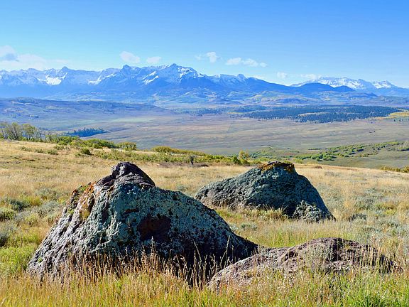Enjoy magnificent, unobstructed 180 degree views of the Sneffels, Wilson, Dolores and Cones mountain ranges from this perched homesite overlooking Horsefly and Iron Springs mesas. Located in the serene, private gated community of San Juan Ranch, Lot 16 offers gently sloping terrain, ideal for a private trail system, a tranquil pond and underground power to the end of the driveway. The property affords year round access and is located in Ouray County, exempt from SMC mitigation fees.