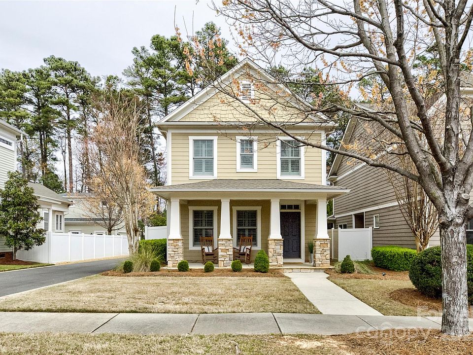 Nestled in the heart of Baxter Village this quaint yet modern cottage-style residence embodies the charm that is Fort Mill. Boasting 3 bedrooms and 2.5 bathrooms, the home flaunts an updated kitchen with sleek white quartz countertops and stainless steel appliances. The welcoming front porch beckons relaxation with its picturesque ambiance. Nearby, discover a family-friendly pool, playground, and vibrant community center. Enjoy the convenience of neighborhood amenities including restaurants, shops, a public library, and an elementary school—all within this sought-after community. Experience the essence of contemporary comfort in this idyllic Baxter Village abode.