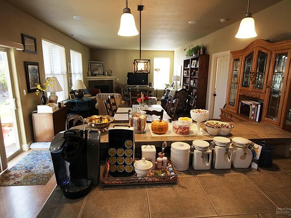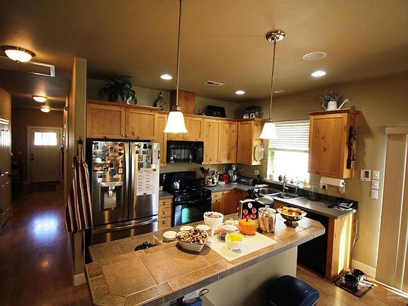 Hard to find single level 4 bedroom home. Corner lot. Nice contemporary look with open floor plan. Lovely kitchen with tile counters and island. Knotty pine cabinets, crown molding. Prewired for surround sound. corner fireplace with slate surround. Spacious master suite w/separate walk in closet. Nicely landscaped front and back fully fenced in back yard with patio area. Fantastic location close to schools and shopping and access to bypass for Bend commuters.