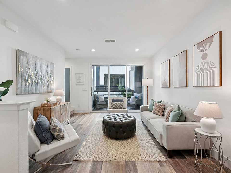 Gourmet kitchenContemporary amenitiesCustom cabinetryStriking tile backsplashWide-plank luxury vinyl flooringRecessed lightingNumber-lock entry doors