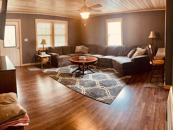 NESTLED ON 2 ACRES, at the end of a cul-de-sac, surrounded by woods is this 3 bedroom gem of a house. 44 x 6 ft Gorgeous, covered front porch is just the place to hang out on those summer nights. Wood ceilings and wood floors are a part of this homes charm. It has a new roof, new windows and gutters with leaf guards on the outside. Large new back deck off the kitchen is a perfect place to enjoy morning coffee, quietly. The downstairs is unfinished and ready for you to design your own living space.