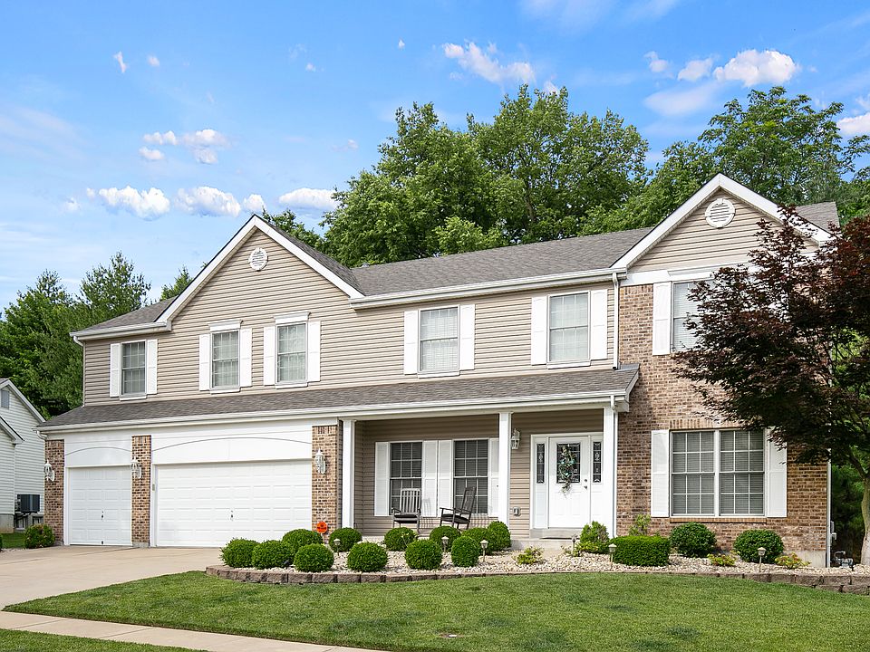 Call Tim Antrobus at 314-276-9178 for a showing or more info. Beautifully maintained original owner 5BR home on cul de sac in highly sought after Covington subdivision. The family chef will love the kitchen! 42" white cabinetry, LG stainless appliances, premium granite countertops and plenty of seating around the island. Spacious family rm w/ wall of windows & gas fireplace - great place for movie night. Formal living & dining rm ready for your holiday traditions. 9' ceilings, crown molding, refinished hardwoods and oversized laundry highlight the main level. Upstairs features loft and 5 bdrms! Huge mstr w/ walk-in closet (15'x8'), luxurious bath & custom shower. Junior suite w/ private bath & walk-in. Two bedrooms with Jack & Jill bath - each w/ walk-in. Level yard & nice patio just need your grill! Upgrades include NEW ROOF, Pella windows, sprinkler system and 9' pour/rough-in bath in basement. Zoned HVAC for added comfort & energy efficiency. Convenient location minutes from Hwys, shopping, parks, restaurants & schools. Home warranty included!