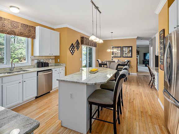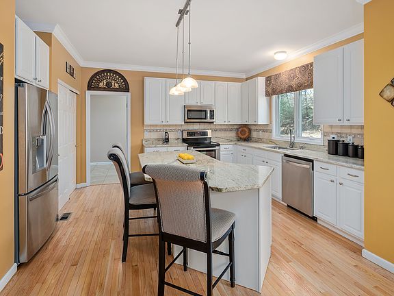 - RoomKitchenFeatures: Granite Counters, Kitchen Island, Breakfast Bar, Eat-in Kitchen, Custom Cabinetry, Breakfast Room, SolidSurfaceCounter