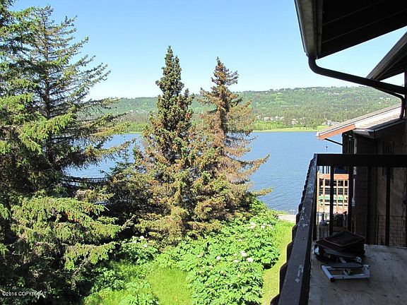 Second floor unit which enhances the view from this super well maintained condo. Great home or rental with laminate flooring, updated kitchen and bath cabinets, appliances, including stack washer/dryer, and hooked up to natural gas! You'll love the lakefront location with summer float planes and seasonal migratory birds and in the winter-you can ski around the lake.