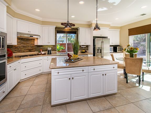 Lives like a single story home! Open concept living area with large island kitchen, master bedroom, office / bedroom and bath on the entry level. This highly upgraded home features beautiful white kitchen cabinets, granite counters, stone backsplash, SS oven/microwave/hood and gas stove top. The bathrooms all feature white cabinets, granite counters, custom tile work, air conditioning and an owned solar system for great SDG&E savings. Relax in the refreshing pool/spa with solar, fire pit and BBQ island.