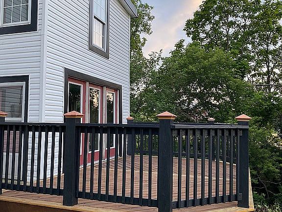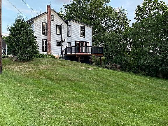 Historic home with original wooden beams and hardwood floors. There are numerous decks for outdoor living and entertainment. The property was recently surveyed and contains 1.15 Acres with a creek on two sides of the property. The home was also recently remodeled with new siding on the house and garage.