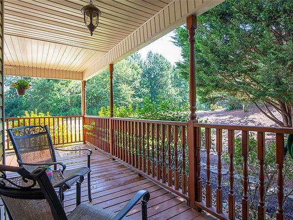 If you enjoy boating, canoeing, kayaking, or just want to fish you are less than 5 minutes away to Lake Lanier. Enjoy the seasonal views of the lake from your hot tub on this private home site. Plenty of parking with a circle driveway and 2 car garage. Wooded backyard includes a paved patio, & deck. Lots of beautiful landscaping around this home. Charming wrap-around front porch. Two homes in one with a finished terrace level that includes 2 large bedrooms, full bath, family room, kitchen, and storage/workshop. The freshly painted main level has a remodeled kitchen with tons of cabinets, tile backsplash, granite countertops, breakfast bar, upgraded range, microwave, large pantry, and eat-in area with chair rail, tray ceiling w/ceiling fan. You have a view into your vaulted ceiling family room with a fireplace for those cozy fall nights. Large master suite with double tray ceiling and walk-in closet, updated master bath with jetted tub, separate shower, and dual vanities. Two large secondary bedrooms, hall bath and laundry complete the main level. No carpet in this home! Great location within 15 minutes of HWY 400 quick drive to Dawsonville. Come take a look, you'll feel right at home when you enter the front door!