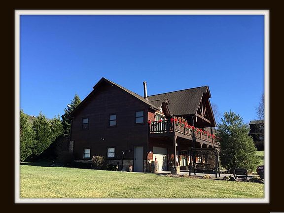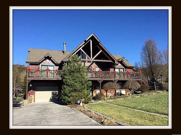 Custom-built log home in heart of Wears Valley. Beautiful views of the Valley and the Smokies surround the property. Gently-flowing small stream with outdoor firepit and gazebo to enjoy. Garage will hold 2 cars in vertical position. Garage is as nice as interior of home! Main level boasts all wood soaring walls and cathedral ceilings. Hardwood floors and custom cabinets (Hickory with pull-out drawers for convenience), stacked stone fireplace, master bedroom suite (double vanities, jacuzzi tub, stand up shower) as well as two other full bedrooms (one with a children's loft), and full bath are all located on main floor. Master bedroom and other bedroom on this level have sliding glass doors to front deck. Lovely screened in back porch with bench seating. Full laundry room also located on main level. Lower level includes great den/recreation room, full wet bar, and two additional rooms currently used as bedrooms (5 bedrooms total!). Garage is also on this level.