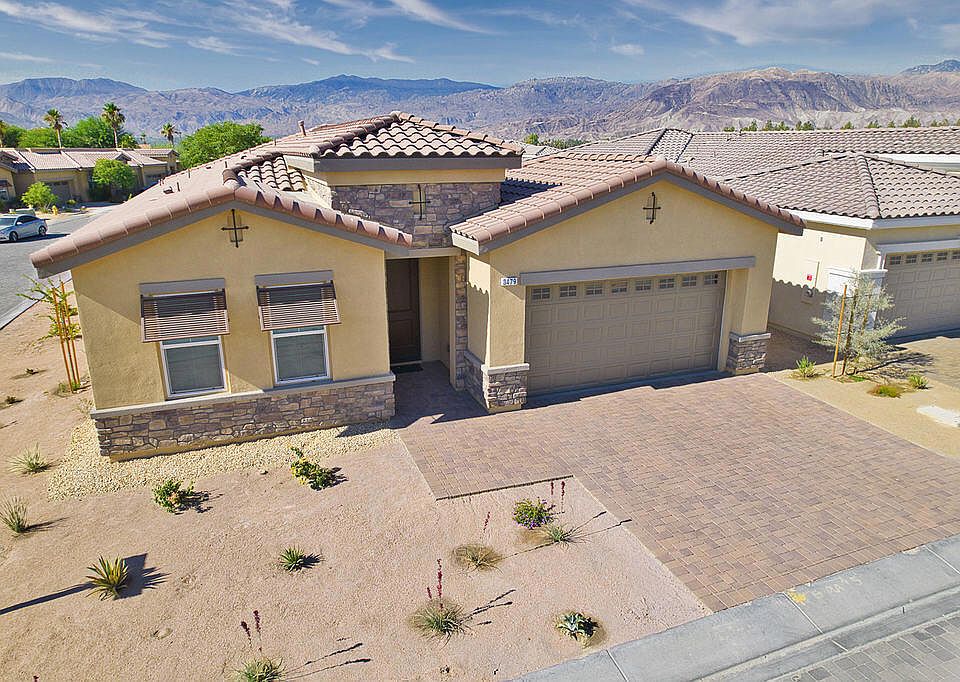 Welcome to Villa Portofino, the valleys premier 55 and better community. This highly sought after Milano plan boasts 2341 square feet with a very open design. The great room is open to the kitchen and dining area with beautiful mountain views and an abundance of natural light. The primary suite has more of those amazing mountain views with a large soaking tub and even larger walk in shower. The office and den spaces could be modified into a possible third and fourth bedroom if needed. Tile throughout this home keeps it cool and easy to clean through the year. Solar panels make this home extremely efficient to cool and will save a small fortune over the years. The 30,000 foot Clubhouse is only a few minute walk away. The Clubhouse offers 2 restaurants, a full gym, movie theater, billiards and game room, shuffleboard, boccie ball and a pool and spa. Villa Portofino is located in the heart of the valley with El Paseo, The McCallum Theater, Palm Desert Mall and Eisenhower Medical Center all within a couple miles. Make your appointment to tour this beautiful home today.