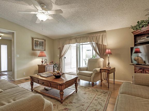 Ivey Ranch is a quiet well maintained 55+ community surrounded by mountains, with a 9-hole regulation golf course, driving range, 4 pools, 2 spas, tennis courts, exercise room and a club house. It is close to I-10 and Cook St exit, convenient to all locations. The 1,568 sq ft home is a lovely 2/2 with a bonus room.The two bedrooms are split at either end of the home for privacy. Also private side double patio with shrubs, flowers, grass and is completely fenced. Full shade tree and grass in the front