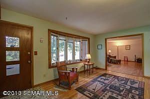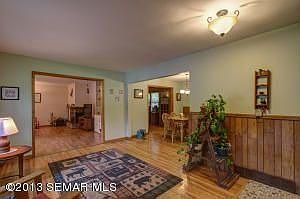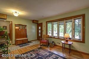 Private 1/2 acre backyard loaded with mature trees! Nice home featuring 3-season porch, patio & permanent siding. Hardwood flooring sprawling thru the foyer, living room, , dining & kitchen areas. New kitchen cabinets, new island with lots of storage. and flooring throughout. Spacious living room . Three main floor bedrooms, one with exposed hardwoods and a spacious bedroom in the basement. Update bathroom with walk-in shower with seat. New flooring in the bathroom, bedroom, and family-room basement.