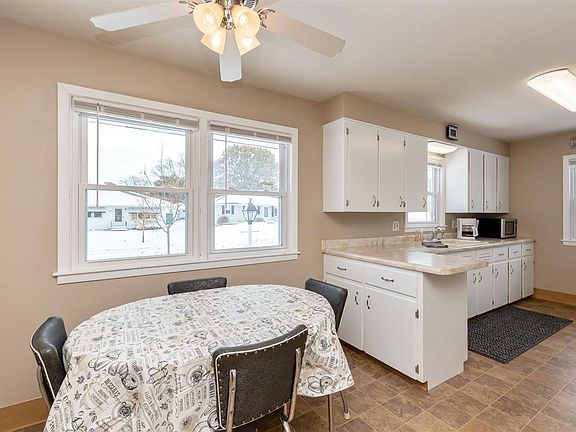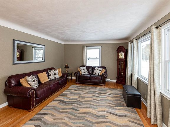 Location, location, location! Super clean, great starter home which is located in a quiet neighborhood on a closed off street. This solid built ranch style home offers 3 beds, 2 baths, and a great 1 3/4 detached insulated garage. The main floor offers a spacious living room with a cove ceiling, large picture window which brings in tons of natural light, hardwood floors throughout, updated windows, white trim throughout most of the house, vinyl flooring in the kitchen which has an eat in k