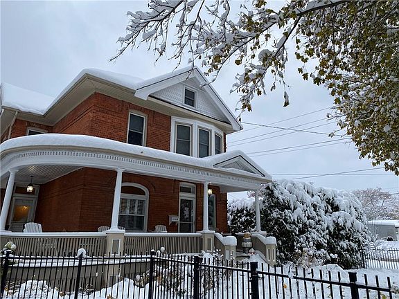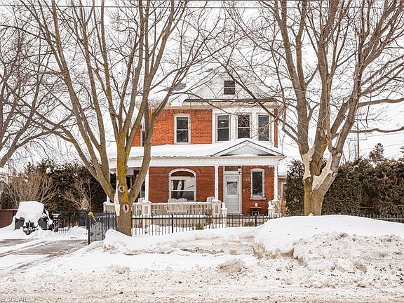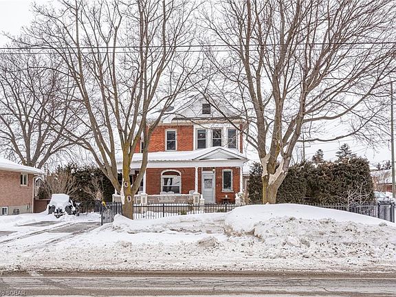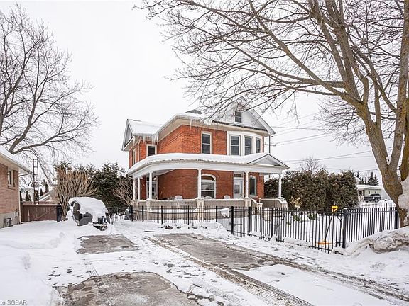 Stunning red brick century home in the heart of downtown Collingwood. Amazing curb appeal with fully fenced landscaped yard, mature shrubbery and beautiful wrap-around front porch. Plenty of space in this 4 bedroom, 2.5 bathroom home with bonus loft space and basement. Many unique characteristics such as 2 staircases, high ceilings, grand double pocket doors, gorgeous trim and original hardwood floors maintain the charm. Main floor features formal dining room, gas fireplace in living room, quartz counters custom cabinetry, high end appliances and walk-in pantry in kitchen, 2 pc bath/laundry and walk-out to private back deck. Second floor provides 4 generously sized bedrooms, ensuite bath with glass shower and main bath. Neutral colours throughout, newer windows, large shed, shingles (2018), new wiring (2005), new furnace & A/C (2011). Room for single or double tandem garage. Short walk to all amenities Collingwood has to offer!