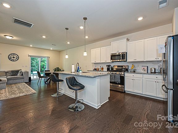 Built in 2023, this Immaculate, 3 bedroom, 2.5 bath townhouse in Harpers Run! Modern look throughout the main level including an open concept kitchen, dining area and living room that look out to the back patio. The kitchen features Granite countertops, stainless steel appliances, an oversize island with breakfast bar, and a subway tile backsplash. The upstairs includes a Master Suite with walk-in closet, tray ceiling, walk-in tiled shower and dual vanity sinks with quartz countertops. There are two other bedrooms, a full bath, and the laundry room on the upper level as well. Conveniently located close to Matthews and within 30 minutes to uptown Charlotte.