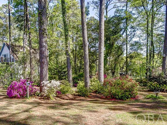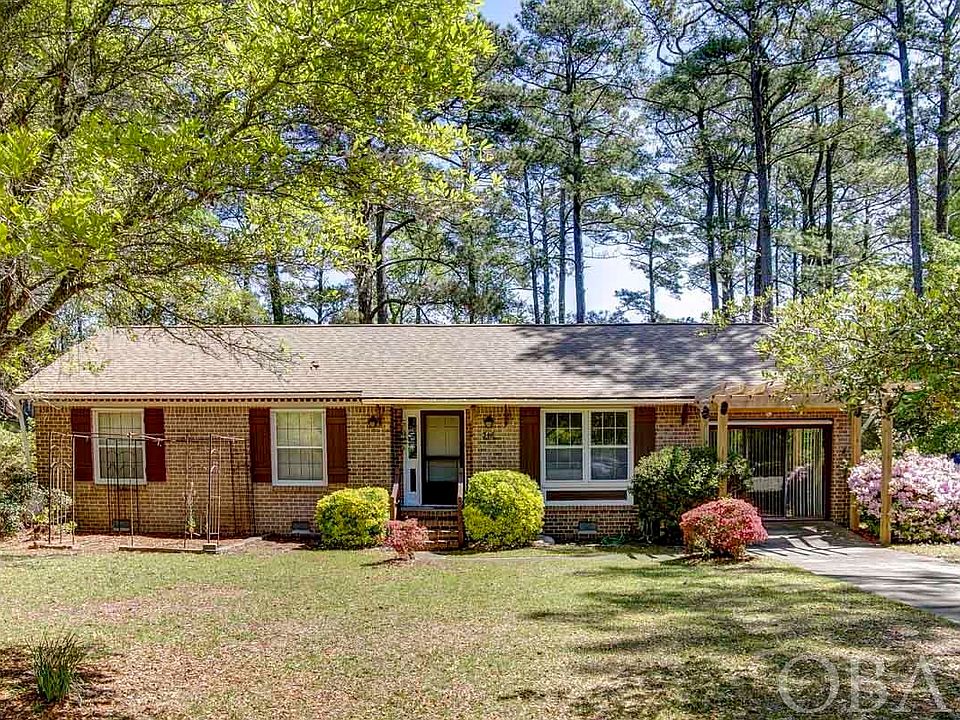 AFFORDABLE ISLAND LIVING IN A BEAUTIFUL SETTING. Discover the charm of island living on a half-acre property adorned with mature trees and vibrant flowering shrubs. This home offers 1696 square feet of heated living space, complemented by a spacious four-season sunroom at the back of the house. Recent updates include a 2024 Fortified Roof, a 2023 HVAC system and a 2023 hot water heater. The main living area features beautiful tile floors, making the space easy to maintain. With 3 bedrooms, 2 full baths, and a separate den which is perfect for an office or playroom, there's plenty of space for family living. Located on the serene north end of Roanoke Island, the home is within walking distance to the County-owned "Old Swimming Hole" and the Roanoke Island Dog Park. The property also features several fruit trees (fig, blueberry and grape) and two outbuildings with power suitable for workshop or storage and even a chicken coup.
