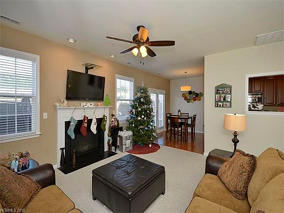 Desirable River Stone! Beautifully updated & maintained. Stone veneer/vinyl exterior. Located on a corner lot w/ a fenced backyard & level front yard, main level double garage & extra parking pad. Freshly painted interior & new carpet. The kitchen includes beautiful granite countertops & stainless appliances. Main level features 2 story entry, dining room & eat-in-kitchen w/ hardwoods. Great room with new carpet & fireplace &opens to patio. Bonus room/office & half bath on main. Upstairs features huge master suite +2 bedrooms & bath & a den/family room. Convenient to Hendersonville & Asheville. Community pool/playground.