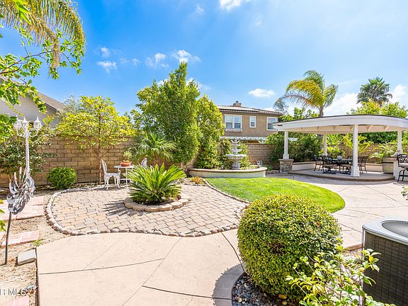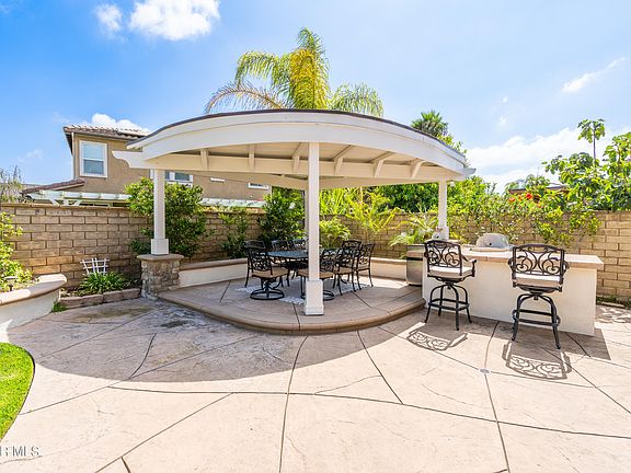 Welcome to this beautifully updated single-story home in the highly sought-after Village at the Park neighborhood in Camarillo. The gourmet kitchen, featuring a chef's island, has been tastefully remodeled with stainless steel appliances and opens seamlessly into the family room, complete with upgraded stone tile flooring. The double-pane windows, adorned with plantation shutters, offer a view of the entertainer's backyard, which boasts a covered gazebo, built-in BBQ, and fruit trees, perfect for outdoor gatherings.