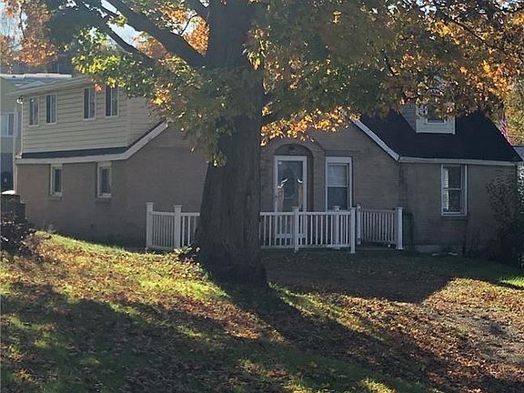 A charming brick home in the heart and village of New Eagle. Solid brick construction and set back on a beautiful triple lot. Large surrounding patio and lots of potential. This home is being sold AS IS. It ideal for a flip or an ambitious new home owner. There is some damage to a small part of the roof that has affected the kitchen ceiling. A new laundry room was added, many new updates throughout, but this home will need some work and loving care. Comes with construction materials left in the basement for remodeling purposes. Fridge not included in sale of home.