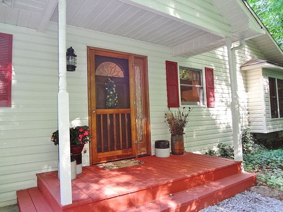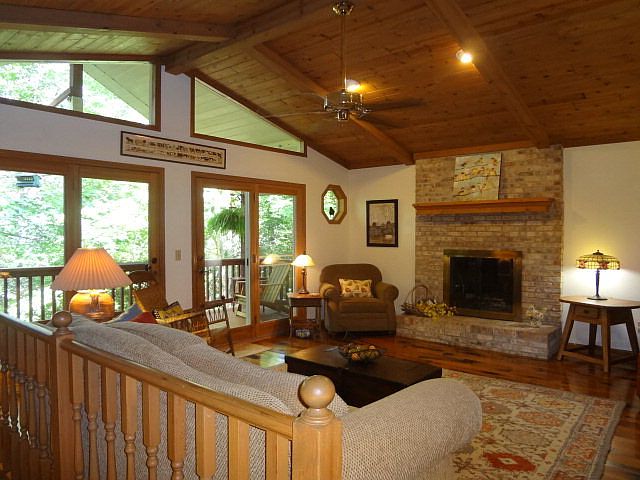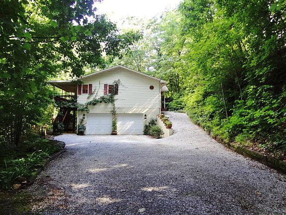 Welcome home to the Peace and Tranquility you'll find with this End of the Road paradise. From the welcoming entrance lined with easy to care for perennials, to the impeccably maintained home, this one is a winner. Open Floorplan with T & G Vaulted Ceiling, Distressed Hickory Floors, Open Kitchen/Living/Dining Area. Updated Kitchen has Granite Counters & Nantahala Custom Cabinets. 20.8' X 12.6' Master Suite w/8.8' X 6' Walk In Closet, French Doors to Covered Porch, Window Seat, Master Bath w/New Fully Tiled Master Shower, Garden Tub, Closet #2, Long Double Vanity. New 2013 Trane HVAC system & Water Heater. Lower Level has Family Room with Electric Fireplace, Guest Bedroom, Full Bath, Big Walk In Closet under stairs. Has its own entrance. Perfect for mom or guests. Garage w/Workbench, several Storage Closets + man cave Bath w/Shower. Double Covered Porches for Outdoor Living. Low maintenance yard has courtyard w/new split rail fence, open ended metal shed for storing wood. No grass to mow.