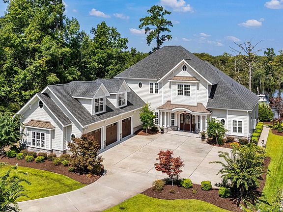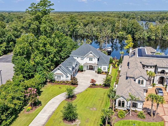 Welcome to your gated 5-bedroom, 4.5-bath, 4-car garage waterfront paradise with its own private beach located on the South End! Situated directly on the ICW with 2 boat lifts and a jetted pool, this home is a must-see! Nestled away in the prestigious community of Cypress River Plantation, this home was built not only with luxury and entertainment in mind but also for the true car collector! The moment you arrive at the private corner lot and meticulously landscaped yard, you know that this is truly your Hallmark movie dream home. This award-winning designed house has a true Estate-style feel as soon as you walk up to the front door! Entering the home, you will quickly be greeted with jaw-dropping 28-foot triple tray ceilings in the living room with unobstructed views of the Intracoastal Waterway. For the true entertainer or just those who love to cook, you won’t be disappointed in this amazing kitchen filled with custom coffered ceilings, gas range cooktop, double ovens, and even an under-cabinet ice maker. Walking over to your master suite with 18-foot triple tray ceilings, his and her walk-in closets, a walk-in shower, and a soaking tub! Featuring a formal dining room and private office, a second en-suite bedroom with a private bath, a powder room, and a massive laundry room with tons of cabinet space all on the 1st floor, this plan does not lack any rooms! Enjoy walking onto your massive covered porch or into your four-season room that overlooks your 21 x 11 jetted heated pool with waterfall features as the boats go up and down the waterway! This four-season room is equipped with remote control retractable screens and a gas fireplace which makes it a great place to watch your favorite game or movie year-round or even just one of the many sunsets! Or enjoy a BBQ in your full outdoor kitchen. Walking outside on your unique stone steps down to your very own private beach or dock, this lot is one of the only lots available that have this feature! Come down for a morning or evening swim or a quick jet ski ride at your convenience. Walking down your expansive dock that boasts not one but 2 lifts! One is a 10,000-pound hydraulic lift while the other is a 16,000-pound boat lift ideal for your bigger boat! Walking back inside to check out the upstairs, we can pay closer attention to all the wainscoting and custom trim, giving this home the luxury feel but a comfortable cottage style! Upstairs you will quickly gravitate to an amazing entertainment room for you and your guests with a custom wet bar, pool table, and private balcony with an amazing wide variety view of the Intracoastal Waterway. Boasting an additional 3 more bedrooms upstairs and 2 full bathrooms, there is plenty of space for friends and family. Additionally, this house also has a massive heated and cooled bonus room of your choice! Lastly, this home has great storage that is very easily accessed and located over the garage! Speaking of the garage, this is truly a car lover's dream. The garage is a 3-bay, 4-car garage that is fully climate-controlled to protect your most valuable collections. Cypress River is a community that offers a lifestyle experience including sidewalks, a pool, clubhouse, tennis courts, basketball courts, a private neighborhood boat launch, and a storage lot for all your trailers and even an RV camper! Guarded 24/7, there are only a few comparable neighborhoods. Located on the south end of Myrtle Beach, you are minutes away from Murrells Inlet Marsh Walk where you can indulge in seafood restaurants, entertainment, and views of the beautiful Atlantic Marsh. Still just minutes away from Surfside Beach where you and your family can enjoy a day out on the beach. Enjoy your endless views of the natural part of the Intracoastal Waterway with protected land that can never be built on! Drop your boat in the water and cruise south to Sandy Island, Georgetown, or even a day trip to Charleston right off your dock or north to Barefoot landing !!