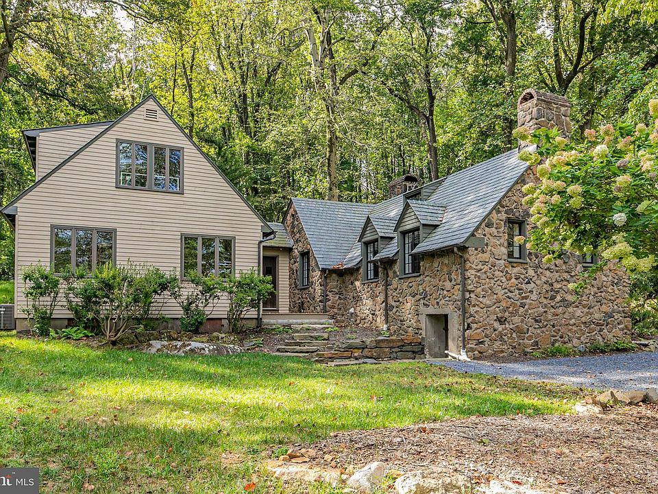 This positively enchanting stone home has been lightened, brightened and beautifully modernized! Thankfully, 1920’s features, like solid wood doors, brick floors and metal casement windows, were preserved and enhanced during the careful renovation. Peaked ceilings with exposed beams now feel even loftier and the living room’s grand stone fireplace commands attention against clean white walls. Antique doors were specially sourced for a much-needed coat closet added to the foyer, further evidence of thoughtful attention to detail. Serving today’s lifestyle, the breakfast room is now open to the stunning new kitchen with quartz countertops, sleek appliances and a wet bar alcove. An adjoining sunroom revels in the woodsy setting with big windows framing natural boulders and verdant foliage, as well as doors opening to a new stone patio that invites relaxation amidst rustling leaves and birdsong. Continuing the home’s signature peaked ceilings, a flexible dining room also spills out to the patio. A pebble-tiled hall bath serves three first floor bedrooms, while the upper level is reserved solely for the primary suite. A soaking tub in the totally luxe primary bath basks in woodsy views and a stacked washer/dryer is hidden beside a walk-in closet. The tiled basement has a second laundry area, as well as a wine room. With a state of the art new septic system and a fully renovated apartment above the garage, complete with a marble bath and quartz and stainless steel kitchen, you can invite guests to escape the hustle and bustle for as long as they’d like! This nestled-in-the-woods hideaway offers seclusion on 5.62 acres without sacrificing convenience, as Princeton's renowned schools and busy downtown are all surprisingly less than 3 miles away.