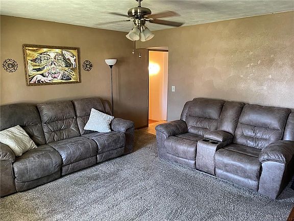When looking at this home, there is an extra driveway that was added in 2013. Upon entering the home, you will be in the spacious living room. Following through to the kitchen, you will have a refrigerator, range, and kitchen table with chairs that is staying with the home. The window unit for air conditioning will also be included with the kitchen space. Following through, you will enter the half bath that has space and hook up for a washer and dryer. There is a stand up shower in this half bath as well. The backyard is large with a 10x12 shed that has storage above inside. Shed also has electric. Coming back through the kitchen, there is a walkway to enter what was a garage. This space is now an extra bedroom with a closet and window unit. The other half of the garage has been converted into a storage area that can hold plenty of items. Coming back through the living room down the hallway, there is a smaller bedroom to the right. Straight ahead is a spacious bedroom with a closet and a large wardrobe that goes wall to wall. To the left of this room, is another bedroom with a closet. Beside the bedrooms is the beautiful full bath that was remodeled in 2020. There is a hall closet with shelves adjacent to the bedrooms. Each room comes with cable capabilities.