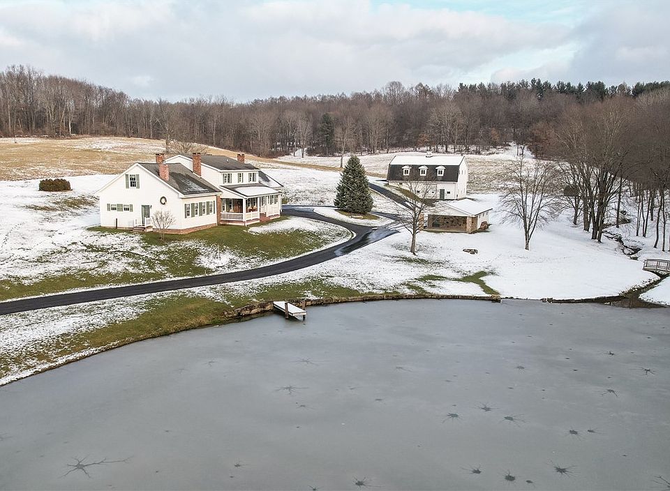 The best of the old and the best of the new. Old world charm (circa 1855) with updated amenities and additions. This home boasts gleaming hardwood floors (old & new), spacious rooms, 4 fireplaces and a 2 story family room with loft, as well as 5 bedrooms and 3.5 bathrooms. Room for family and friends! Enjoy your coffee on the cozy front porch which overlooks your very own half acre +/- stocked pond. Access the oversized 2 car attached garage via the asphalt driveway. There is also a 3 car detached garage with a picnic shelter/carport attached - ideal for parties and family reunions. Follow the asphalt driveway to a modern 2 story barn with heat and water - suitable for horses, car/motorhome storage and much more! Private and serene location situated 10 minutes North of Butler. Generac whole house generator. OGM transfers!