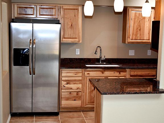 Just finished complete top to bottom, studs out remodel. Brand new refrigerated AC system installed. New roof to be completed soon. Home was taken back to studs and reconfigured to create open airy floor plan. Modern feel with knock down texture and rounded corners. Kitchen and bathrooms completely redone. Beautiful garden home with huge skylight for lots of natural light, engineered hardwood floors with tile in kitchen and new carpet in bedrooms. Designer colors, granite counters, and stainless appliances finish the package. Low maintenance yard is nicely landscaped. Must see!
