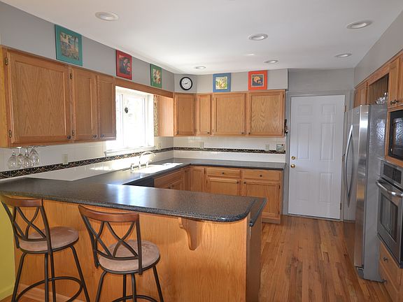 Original owner - Excellent condition- IDEAL open layout, custom tiles, new kitchen appliances, dining rm, living rm w/4ft glass doors to great deck overlooking in-ground pool - a wonderful set up for entertaining! New HW floors, carpet, fresh paint and window treatments. Full basement w/8ft ht. and finished flex rm. Flex spaces, energy efficient tankless water heater, baseboard heat, furnace cleaned/inspected, roof 5 years, shed, 2 ½ car 3 door garage, landscaped, gardens, Verizon FIOS, ½ mile from golf course, close to I87, I90, shopping and dining. Driveway will be resurfaced in April.