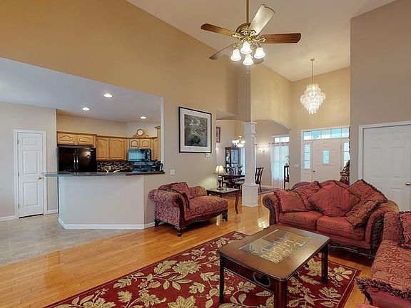 Beautiful expandable 6+ room, 3 bdrm, 2 bath Ranch in convenient location offers newer construction with an open floor plan, at an affordable price. One owner property has been well loved and maintained. Well designed kitchen offers a dining area w/ deck access. Generous master bdrm suite has a private office which can double as dressing room or nursery, walk-in closet and a bath with double vanity sinks, a walk-in shower stall, separate soaking tub & private commode. 2 guest bedrooms and bath are separated from the master bedroom wing. Bedroom carpets just replaced this year. Architectural features include pillars, 14' ceilings in LR &Foyer, 12' ceilings in dining rm & tray ceiling in MBR. Bonus room above garage can be finished for more living area if desired. Magnificent lower level boasts a game room, walk-in cedar closet (great for off season clothes storage) & a huge family room w/sections for pool table, media TV lounge, & play area/home gym space.