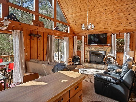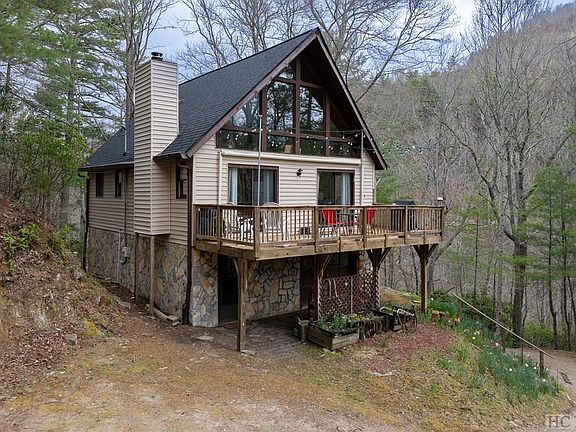 Atop a serene plot, this charming A-frame home, built in 1984, is ready to embrace its third lucky owner. Boasting a recent roof replacement in 2022 and a shiny new well pump installed in 2021, you can rest assured knowing that some of the big ticket items have been addressed. Step inside and bask in the glorious natural light pouring through the southeast-facing windows, illuminating the open concept living, dining, and kitchen area beneath its vaulted ceiling. With its full basement primed and ready for your personal touch, the possibilities for customization are endless. Create the ultimate entertainment space, a cozy retreat, or perhaps even your own personal gym – the choice is yours! Outside, nature beckons with open arms. Buck Creek runs through the property, offering a tranquil soundtrack to your daily adventures. While not easily accessible, the creek unveils its hidden treasures in the form of waterfall views during certain times of the year. Picture yourself unwinding on the front deck, soaking in the short-range ridgeline views and listening to the soothing melody of the creek below – it's the epitome of relaxation. Plus, just off the back of the house, discover your own private oasis with a cozy firepit area. But that's not all – as if this haven couldn't get any better, you'll also enjoy access to a picturesque picnic area on the banks of Buck Creek, an amenity for community members only. Whether you're hosting a family gathering or simply seeking solace in nature, this idyllic spot is sure to become a favorite retreat. Conveniently located less than a 30-minute drive from Main Street Highlands and downtown Franklin, you'll enjoy the perfect blend of tranquility and accessibility. Embrace the best of both worlds – a peaceful retreat surrounded by nature, yet just a stone's throw away from the vibrant energy of town. Don't miss your chance to make this home yours – schedule a showing today and prepare to fall in love!