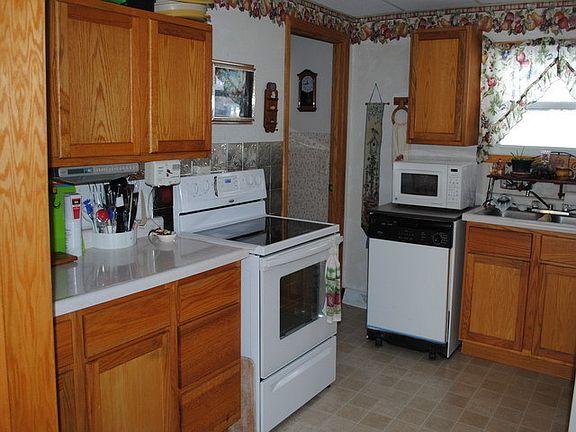 Small bungalow with new shingles, gutters, windows, furnace, electrical. Two bedrooms, one bath situated on large lot. Detached garage has attached insulated workshop. Enclosed porch is 8'x13.5' Electric averages $65 per month Propane around $500 per year Oak trim, interior and exterior doors replaced partial basement;