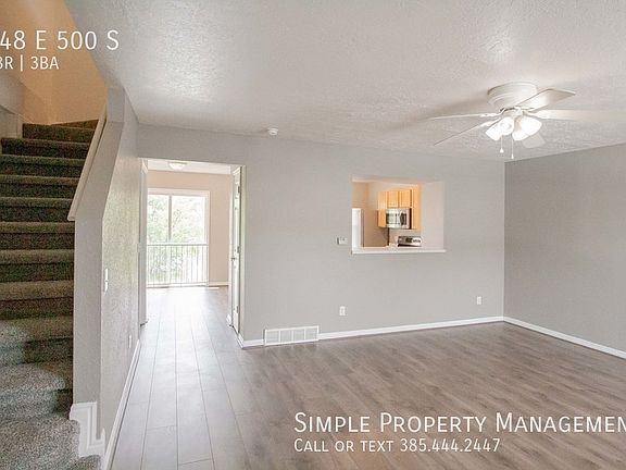 This spacious 3-BD 3-BA Townhouse is conveniently located within walking distance of Utah's famous Freeport Center and is only minutes away from Hill AFB, Northrop Grumman, and the heart of Layton City, with endless options for shopping, dining and outdoor recreation. Basement livingroom has a closet and can be used as a 4th bedroom with private bathroom. Home features a spacious living room with service bar, large master bedroom with private full bathroom, walk-in basement with a large family room / entertainment area as well as an additional full bathroom and laundry room / storage room. Every floor level has an impressive amount of natural daylight. New laminate flooring and plush carpet throughout. Well-kept and incredibly clean. Back yard includes a small garden planter that can be used for home-grown produce or flowers. Attractive community includes private playground and resort-like landscaping. Great place to call home! UPSTAIRS FLOOR: -Large master suite with private bathroom (full bath) -Two bedrooms -Full hallway bathroom -Hallway linen closet MAIN FLOOR -Full kitchen with included appliances -Spacious living room with service bar BASEMENT -Laundry room (appliances not included) -3/4 bathroom -Spacious entertainment room -Walk-out access to back yard -Plenty of storage space YARD -Garden planter -Turf area PARKING: -Two reserved spots (1 covered and 1 uncovered) ALL UTILITIES ARE THE RESPONSIBILITY OF THE TENANT. Advertised rent rate based on 12-month term. Shorter term option may be available for higher rent (inquire with management). Security deposit equal to one month of rent due at lease signing. Includes non-refundable portion of $250. Tenant required to maintain renters insurance at all times. All adults required to apply. $45 per applicant due with application. Lease documentation fee of $50 due at lease signing. One dog allowed with $500 deposit + $50/mo pet rent. Assigned Outdoor Parking