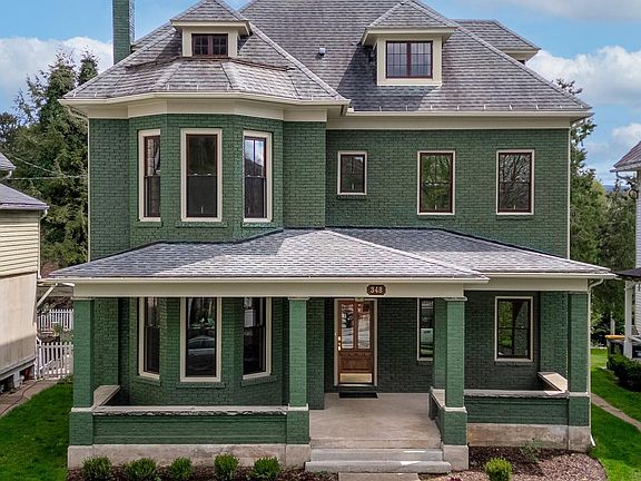 Making old things new, this beautiful 1905 home is the perfect marriage of timeless charm and modern luxury. Offering 5 bedrooms, 3 and a half baths, and 2,782 sqft of living space, there is room for everyone in this turnkey historic home. A freshly completed 1.5 year renovation provided a host of brand-new features including new windows, all new plumbing & electrical, an efficient central heating/cooling system, a freshly painted brick exterior, tasteful engineered hardwood flooring & so much more. At the heart of this home, you will find the show-stopping kitchen, designed for effortless gatherings and entertainment. It is outfitted with solid Amish-built custom inset cabinetry, SS appliances, honed granite countertops, and a striking 36” ILVE Italian gas range. Seamlessly flow into the formal yet inviting sun-filled dining room, adorned with tasteful Swedish wallpaper and custom millwork to match the restored oak archway. 10’ ceilings on the main floor make for an airy and comfortable space in the living room, complete with an original fireplace (decorative.) Truly unique for a historic home, the main level is completed by an owner’s bedroom, lavish ensuite bathroom and walk-in closet with a convenient option for secondary laundry. On the second level you will find four additional bedrooms, 2 full baths with custom Heritage tile, and a laundry room complete with a utility sink. A delightful surprise to complete the level—a finished sunroom space with glorious windows, offering endless possibilities as a flex space or an artistic sanctuary to take in the beautiful mountain views. The home offers ample storage in both the unfinished basement and attic. Value the easy proximity to charming, downtown Victorian Bellefonte, with a variety of eateries, coffee shops, Talleyrand Park and community events. To be completed by the end of May, a newly constructed 2-car garage can be found at the rear of the property. The garage is oversized, easily fitting two pickup trucks, and offers additional storage space accessible from the backyard. Don't miss your opportunity to call this unique offering home!