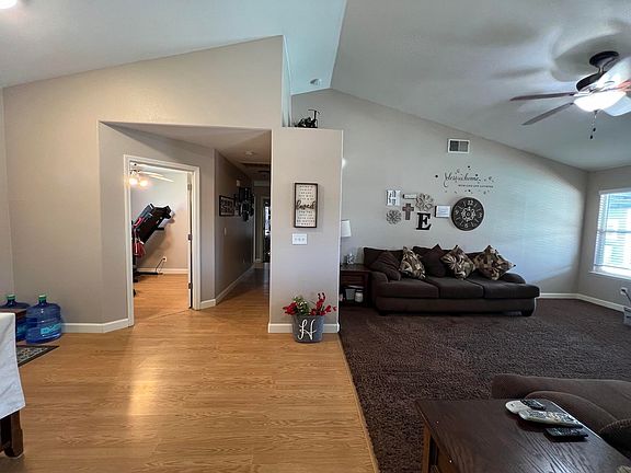 This 4 bed 2 bath home has a lot to offer! Vaulted ceilings, open spacious floor plan, a sparking pool with rock feature plus an incredible large covered patio! A fenced area for pets and cute shed that matches the house are more bonuses! Another huge perk is the fully paid owned solar system to considerably reduce your electric bills for many years to come!! What a perfect place to be every summer with a relaxing oasis right in your very own backyard! Send this listing to a Realtor to get a showing scheduled!!