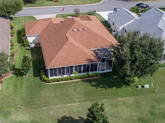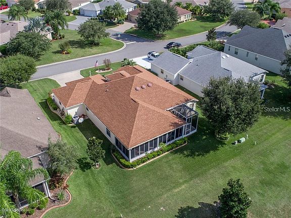 Situate on the HAVANA Championship Golf Course, this beautifully appointed 3 bedroom 2 bath DESIGNER house is just what you have been looking for. Located in the Village of Hadley in THE VILLAGES(r) convenient to the Colony Recreation Center and shopping and restaurants, this house has PLANTATION SHUTTERS, STAINLESS STEEL APPLIANCES, OPEN FLOORPLAN, SPACIOUS KITCHEN WITH NOOK, and CLOSET PANTRY. You will appreciate the INDOOR LAUNDRY ROOM and GOLF CART GARAGE. Relaxing on the spacious enclosed lanai and enjoying your view of the golf course is sure to be one of your favorite things to do. The MASTER BEDROOM with ENSUITE has a walk in closet and ROMAN SHOWER. Both GUEST BEDROOMS have closets and the BAY WINDOW in the front bedroom allows plenty of sunlight in. This is a MUST