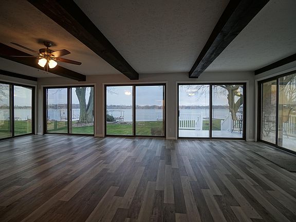 ***OPEN HOUSE - SUNDAY, APRIL 7TH 1-3 PM*** Seller will entertain offers on Monday, April 8th at 3:00PM. 54' of some of the best beach and lakefront on BIG Chapman lakefront. Newer concrete seawall, 2 sections of Brock Dock Pier and lake views you'll never get tired of! Inside you'll find an updated 3 bedroom, 1 1/2 bathroom, open concept home that is ready to move into. The living room with gas log fireplace, dining room, and large appointed kitchen are all connected and have great views of the lake out over the maintenance free deck. 3 generous sized bedrooms,1 1/2 bath rooms and utility room complete the floor plan. The heated 2+ car garage also includes the laundry room with utility sink. "NEWS" INCLUDE: 2018 Vinyl plank flooring, exterior paint, epoxy garage floor, refrigerator, gas range/oven; 2021: garage door & opener(Wi-Fi enabled), kitchen countertops refinished; 2022: water softener, whole house filter; 2023: Rheem 96% 2 stage gas furnace & 16 seer 3 ton central A/C (both w/transferrable warranty), duct cleaning; This house is connected to K Connect fiber internet. This property will be hooked up to the Tippecanoe & Chapman Lakes Reginal Sewer District.