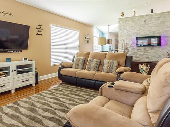 AWC - Taking Backup Offers Back on market a Must see! Gorgeous affordable model like looking home! Newly painted on the outside, brand new front door lovely home! Where will you find a 3 bedroom home in this condition with a pool. This conveniently located 3 bedroom 2 bath home has newer AC all stainless steel upgraded appliances, high end washer, dryer, decorative fireplace in living room, veneer wall and lots of other upgrades. This amazing home has an open floor plan great for entertaining and boasts split bedrooms, vaulted ceilings and a wonderful screened in pool area great for enjoying those family evenings. Call now to schedule your private showing to see this great home!