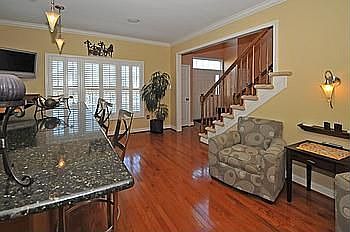 Beautiful home in House Beautiful condition features extraordinary upgrades: Dramatic two story foyer with hardwood; Living room with gorgeous granite built-in bar, crown moldings, surround sound, custom plantation shutters; Dining room with hardwood, crown molding and chair rail; Kitchen with granite tops, tumbled marble backsplash, extra deep stainless undermount sink, under cabinet and top lighting, custom panels on appliances; Breakfast room with access to beautiful covered patio overlooking custom inground pool; Two story family room with granite wet bar, gas fp, wall of windows, bamboo flooring, remote control for silouette custom lighting; MBR with tray ceiling, recessed lights, plantation shutters and sitting area; MBA with seamless shower; Custom fixtures and paint throughout; Extended length driveway; Extensive landscaping and front/rear lighting; Covered Patio, Pool with Waterfall!! Would be a great Investment!