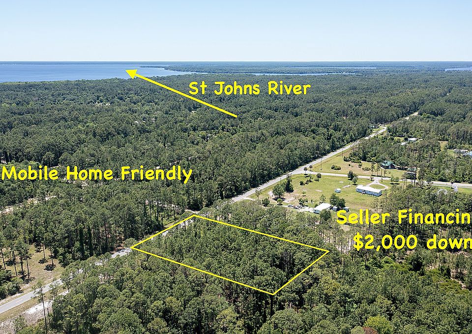 Own this Mobile Home Friendly 1.1 Acre Lot with $2,000 Down, $220/month. No Penalty for Early Payment. Access to St johns River and Lake George. Paved Road. See photos for the Aerial Video of the Property Peaceful and Quiet Neighborhood. Enjoy the Rural Life Style on this big Acreage. Be Away from the city life but also be close enough for quick access to Florida’s Coast Zoned R-2: Mobile, Manufactured and Modular homes. Seller Financing is Available! $2,000 down payment, $220/month for 8 years OR $2,000 down payment, $259/month for 6 years OR $2,000 down payment, $290/month for 5 years Doc Fee: $350 Perfect for Boating and Kayaking Community Lake Access and Boat Ramp for Lake George (Second largest freshwater lake in Florida) Perfect spot for Weekend Getaways No Impact Fee Zip Code: 32139 Zoning: Mobile, Manufactured and Modular Power: Available, needs to be hooked up Septic & Well: will be needed Size: 1.03 AC Tax: $77/year Property access: Paved Road HOA: $40/year to use the boat ramp and picnic area and Lake George to enjoy canoeing, and other water sports 55 mins to Flagler Beach 1 hr to Ormond Beach 1hr to Ocala National Forest 65 mins to Daytona Beach