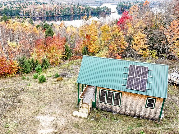 Lovely seasonal cabin on 45 acres with frontage on Sandy Pond, a freshwater paradise. The cabin was beautifully built in 2019 and features cathedral ceilings in the open living room with a kitchen, little nook room and bathroom in the back. A loft bedroom completes the pictures. The walls and roof are insulated and windows are double paned so adding a woodstove would allow colder season use.