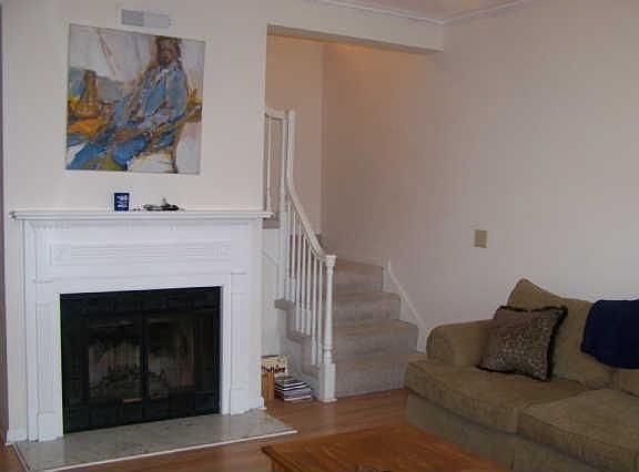 Great for first time homeowner or investor! 2 bedrooms up, each with private full bath. Balcony and walk in closet on master. Wood burning FP, bay window, LR wired for surround sound.