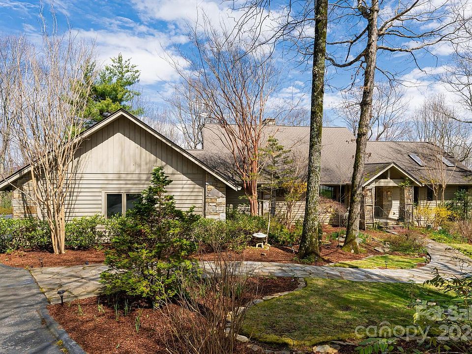 Fall in love with this beautiful home nestled on over an acre of the most magical landscaped grounds you will find with winter views. The open floor plan is amazing boasting over 3000 SQFT on 1 level with additional 1871 heated SQFT in lower level. This home has it all- main level features expansive great room and den w/ dual floor to ceiling stone fireplace, wall of windows, huge kitchen w/ island, sunroom, lovely and spacious dining room overlooking great room, master suite with large walk-in closet, whirlpool double vanities, walk-in shower and laundry room, 2 powder baths. The lower level features a family room with fireplace, large study, 2 guest bedrooms, full bath, workshop with stairs leading to garage and plenty of storage. enjoy the views and beautiful gardens from the sunroom, deck, screened porch and patio area. All the rooms in this home are large. Level driveway and yard with 3 car garage makes this a very unique find. Convenient location to gate and amenities.