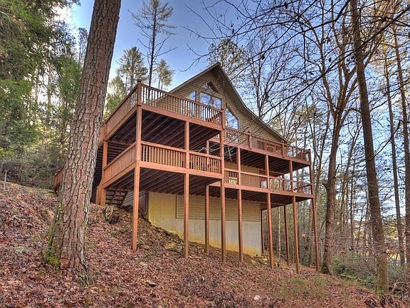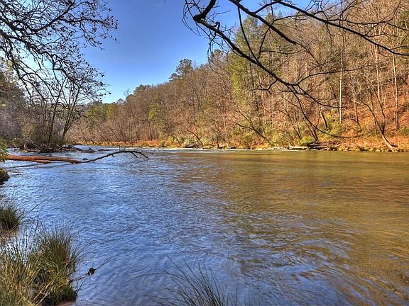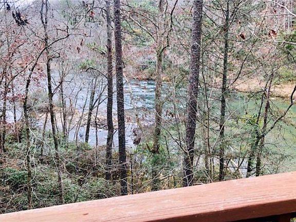 This 2BR/2BA cabin is on 3.18 acres w/RIVER FRONTAGE & Great PRIVACY! View the long stretch of river from large open deck and screened in porch. Cabin features great room w/rock fireplace (gas logs) cathedral ceilings, hardwood floors, dining area, pantry, half bath, laundry & master suite on main floor. Master bath includes jetted tub & walk-in shower. Huge loft bedroom suite w/walk-in closet. Full unfinished basement provides great storage or room to add additional living space. Cabin is not in flood plain, easy walk to water's edge w/sandy shoreline area.