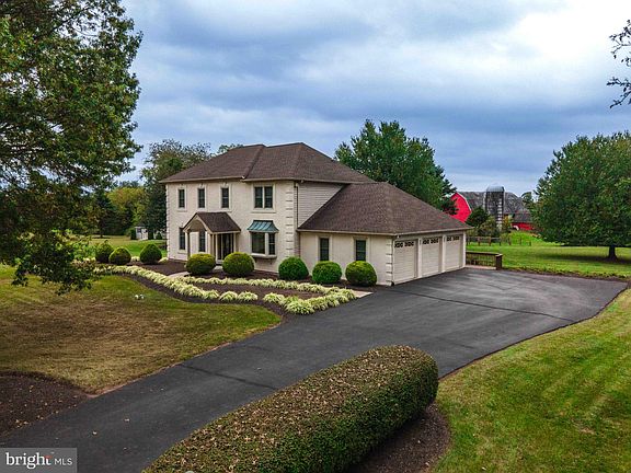 Welcoming 4 Bedroom 2.5 Bath 3 Car Side Entry Garage Colonial situated on a serene .69 Acre Lot in Sunset Meadows, Trappe Borough, Perkiomen SD. NO HOA FEES. Gas Heat. Public Water & Sewer. Newer Double Hung Windows Throughout and Fiberglass Front Door with Side Lights. Newer Roof with Dimensional Shingles. A welcoming home surrounded by meticulously maintained landscaping and relaxing views of a neighboring farm from the expansive pressure treated newly stained & sealed deck. This home has been lovingly maintained inside and outside. An inviting walkway that leads to a covered porch which opens to stunning Hardwood floors that flow through the Foyer with a Coat Closet, Living & Dining Room. The Dining & Living rooms are accented with a chair rail and crown molding. Warm inviting Kitchen and Bumped Out Breakfast Room with Tile Flooring, Granite Countertops, Tile Backsplash, Double Oven, Built-In Microwave, Recessed Lights, Ceiling Fan & Large Pantry with French & Storm Door that leads to the deck. Main Floor Laundry and Half Bath. Enjoy relaxing in the bumped out Family Room with a Wood Burning Fireplace. Mostly freshly painted rooms. The upper level Primary Bedroom has a double door entry, ceiling fan, chair rail and a Large Walk-In Closet. The gorgeous Primary Bath with Skylight and Custom Blinds has been completely renovated with Tile Flooring, a Higher Double Sink Vanity, Shower with B-I Seat, Two Mirrored Medicine Cabinets and Hotel Style Towel Rack. The other three bedrooms share a hallway linen closet and a hall bathroom with custom blinds, Mirrored Medicine Cabinet, a tub/shower combo, tile flooring and Skylight. All Bedrooms are a generous size with smoke alarms. The 4th Bedroom is currently used as an office with a Closet that leads to the Unfinished Walk-Up Attic. Carpets throughout have been freshly cleaned. Included in the Borough's taxes is Trash collection and once at the end of the month bulk pick up. Great Neighborhood, School District and Conveniently located to Shopping and Travel Routes. Information is reliable but not guaranteed and should be independently verified (measurements may not be exact). A Wonderful and Warm Home awaits you!