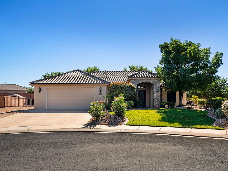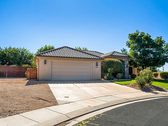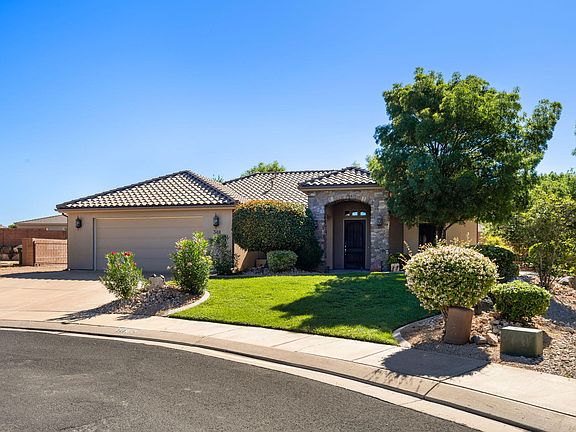 This spacious rambler sits on a low traffic street with a fully fenced .35 acre private yard. Home features: split bedroom style with possible 4th bedroom (den); screened in porch; dog run; oversized 614 s/f garage; extra length parking for RV; osmossis water system; HVAC replaced in 2022; new quartz tops. Close to shopping, Grandpa's Pond, Quail Lake, Sand Hollow. Square footage figures are provided as a courtesy estimate only and were obtained from county records. Buyer is advnsed to obtain an independent measurement. Agent related to seller.
