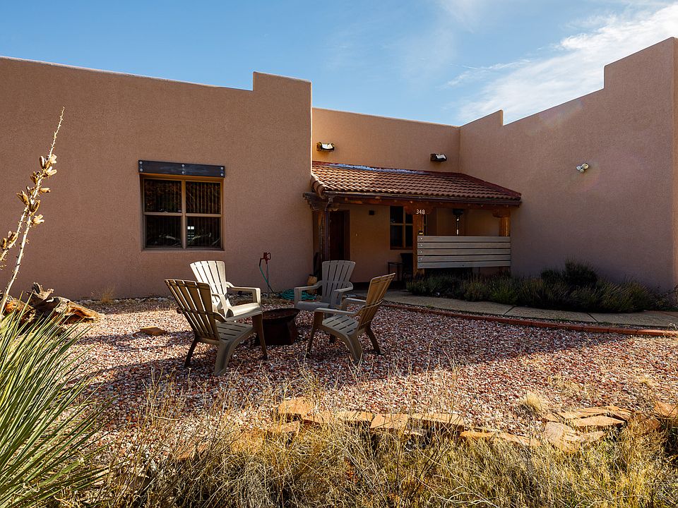 Capturing unobstructed red cliff views from both interior living spaces and outdoor retreats, this Southwest-inspired residence offers 2,197 sq ft on 1.05 acres right in Kanab. Currently operating as a successful, income-producing vacation rental with a solid three-year history, the property is offered turnkey and presents a seamless transition for continued use or a primary residence. Designed to enhance the natural landscape, the home features timeless tile flooring, vaulted ceilings, sky lights, and expansive windows showcasing the legendary Kanab backdrop. The kitchen includes bar seating and connects to a dining area with stunning views. The 3-bedroom, 2-bath floorplan is anchored by a peaceful primary suite with direct patio access and a private sauna. Outdoor living shines with covered and uncovered patio areas overlooking the sunsets, sunrises, starry skies and the Red Cliffs. The acreage accommodates horses, includes fenced pet-friendly areas, and offers a 220 sq ft storage shed. Experience the quiet, open space of desert living with close proximity to trails, recreation, and town conveniences. Buyer to verify all.